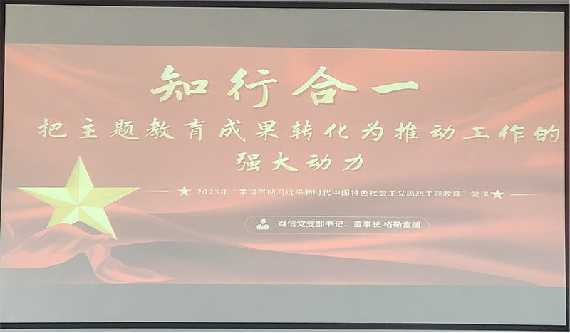 为深入开展学习贯彻习近平新时代中国特色社会主义思想主题教育,全面贯彻党的二十大精神、推进新时代党的建设伟大工程的总体要求,按照区政府国资委、区投资公司党委关于主题教育的统一安排部署,公司党支部书记、董事长格勒索朗同志于近期以“知行合一,把主题教育成果转化为推动工作的强大动力”为题,开展主题教育党课。支部副书记、副总经理李敏同志主持学习会议,公司全体干部职工参加学习。